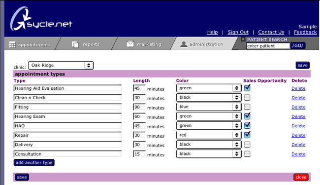 You can also designate which appointments types are sales opportunities. This helps calculate a close rate report in the reports section. |