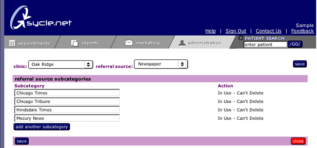 You can add sub referral categories to any referral category. This area is clinic specific and ultimately identifies the most beneficial use of your media marketing budget.