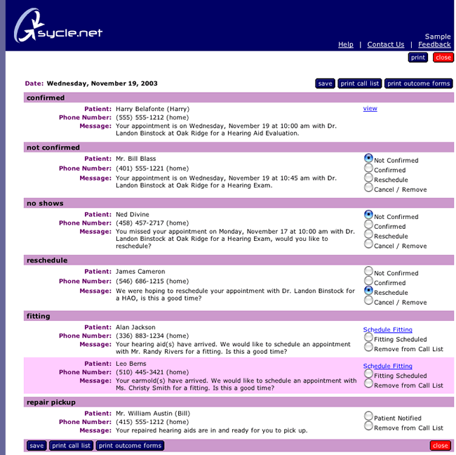 The "call list" maintains any and all patient-related calls. Each appointment to be confirmed populates the day before the actual appointment. "no shows" and "reschedules" automatically show on the call list and stay there until an action is taken.