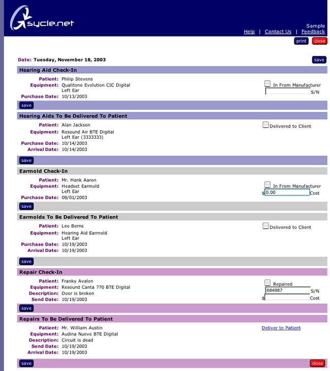 When hearing aids, repairs or ear molds arrive, simply click on the "inventory" box from the schedule page to check them in.