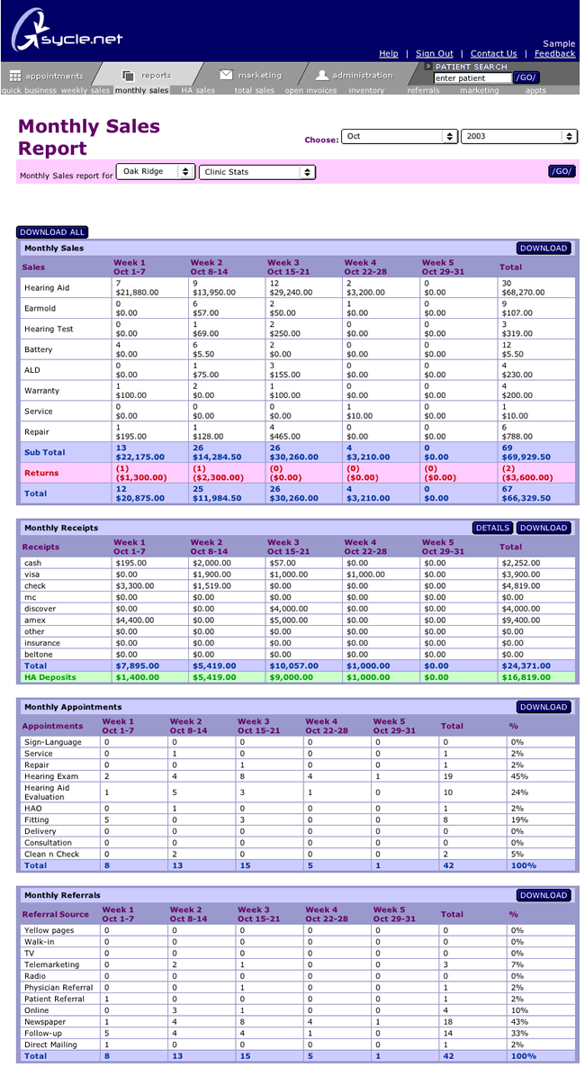 The Monthly Sales Report has all the features and smaller reports of the Weekly Sales Report but is shown by week instead of day.